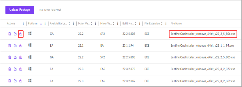 2. Baixe o pacote de SentinelOneInstaller.exe mais recente do Windows GA ou SP .
