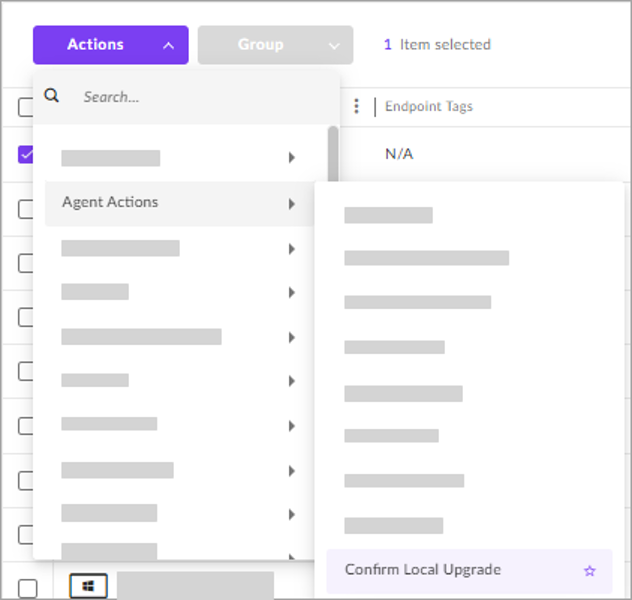 b- Clique em Ações > Ações do Agente > Confirmar Atualização Local.