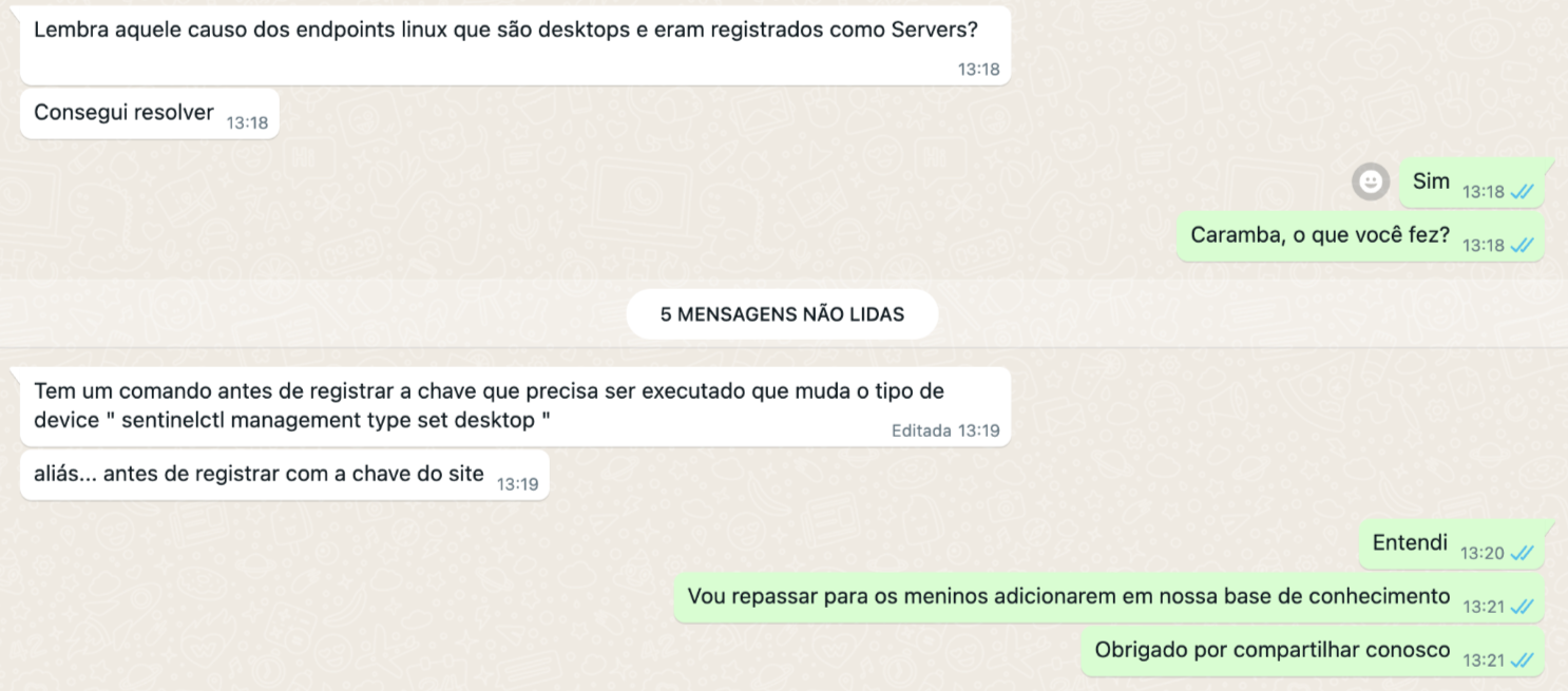 Estação de trabalho no linux que são desktops mas o sentinelone identificava como Servers.