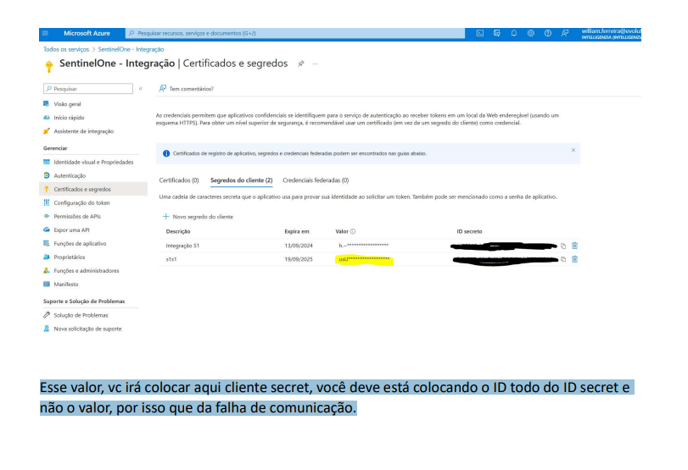 Você deve criar um novo segredo, e copiar o valor dele. E salvar esse valor em um bloco de